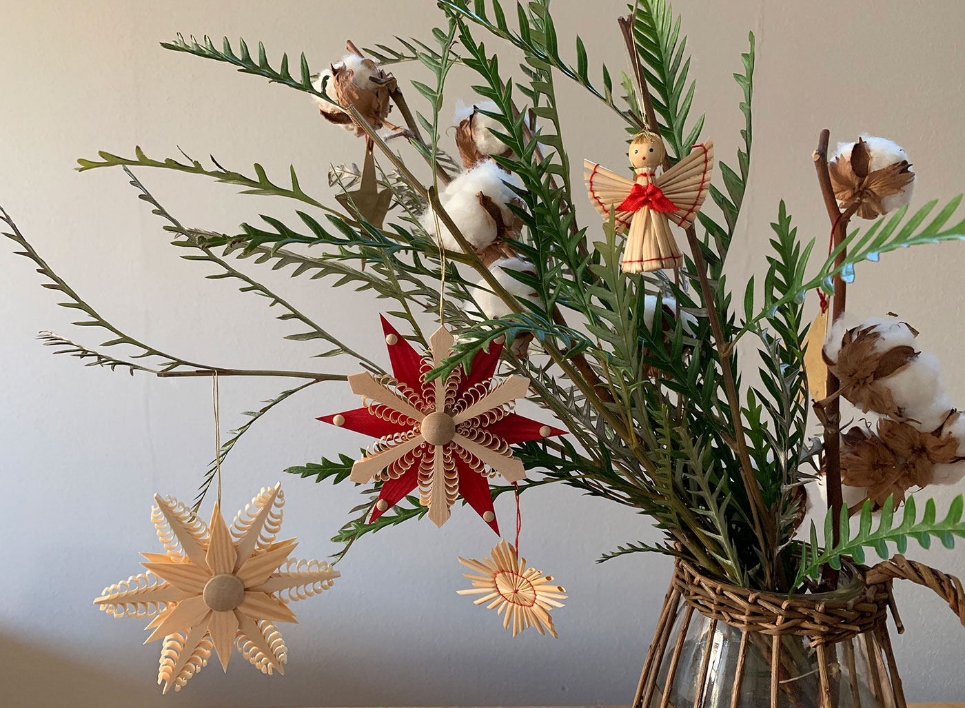 私はというと、クリスマス風の枝に好きなオーナメントを飾って楽しんでいます。