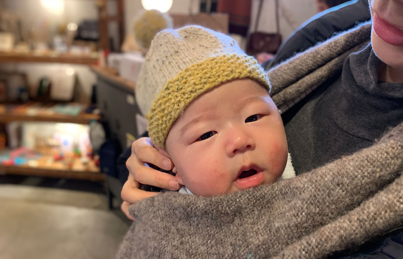 はっと思い立ち、電車に揺られ、EIMEKUにベビーのニット帽を買いに来たのを思い出しました。
