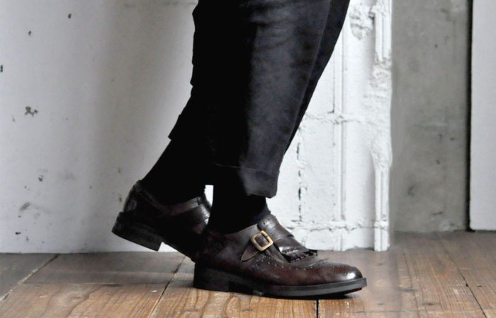 紐靴のような煩わしさはなくサイズ感の調整も可能なモンクストラップ。