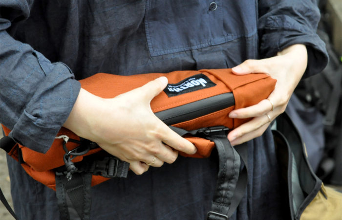 1000デニールの耐久性・耐水性のあるCORDURAナイロン生地や止水ジップ、