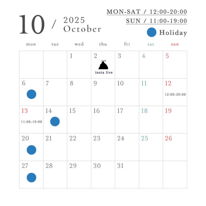 insta liveは10/2(thu)のみ決まっておりますが、