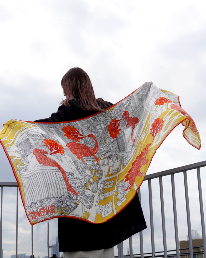個人的には、パリの街に登場した恐竜たちのストールがとってもお気に入り。