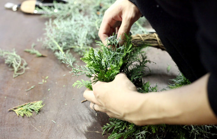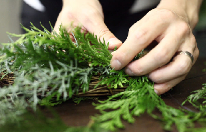 アパレルショップのクリスマスリース作成や、