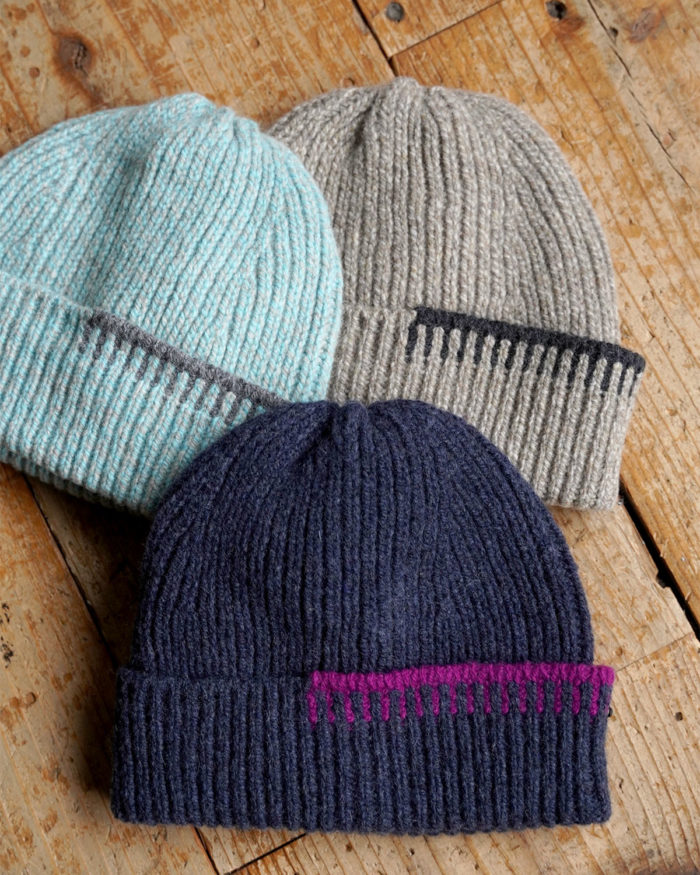 縦にすっと伸びるリブ編みが頭に心地よくフィットし、