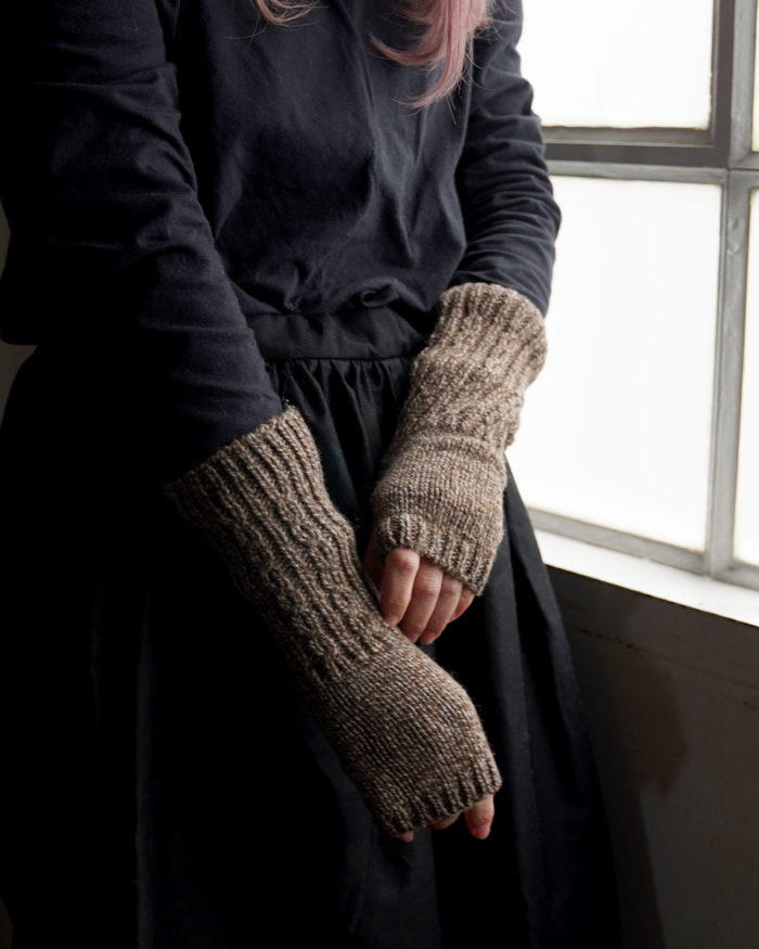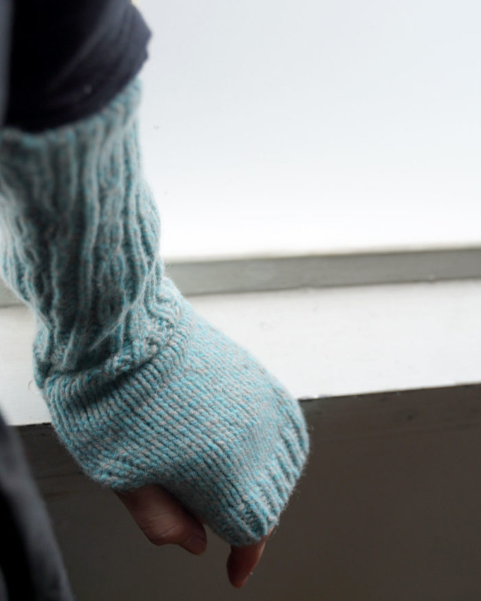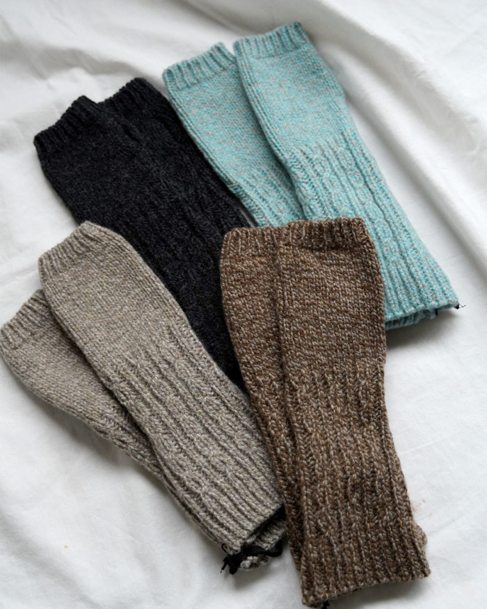 こちらもの同じくメリノウール&カシミアで編まれた、冬にうれしいハンドウォーマー。