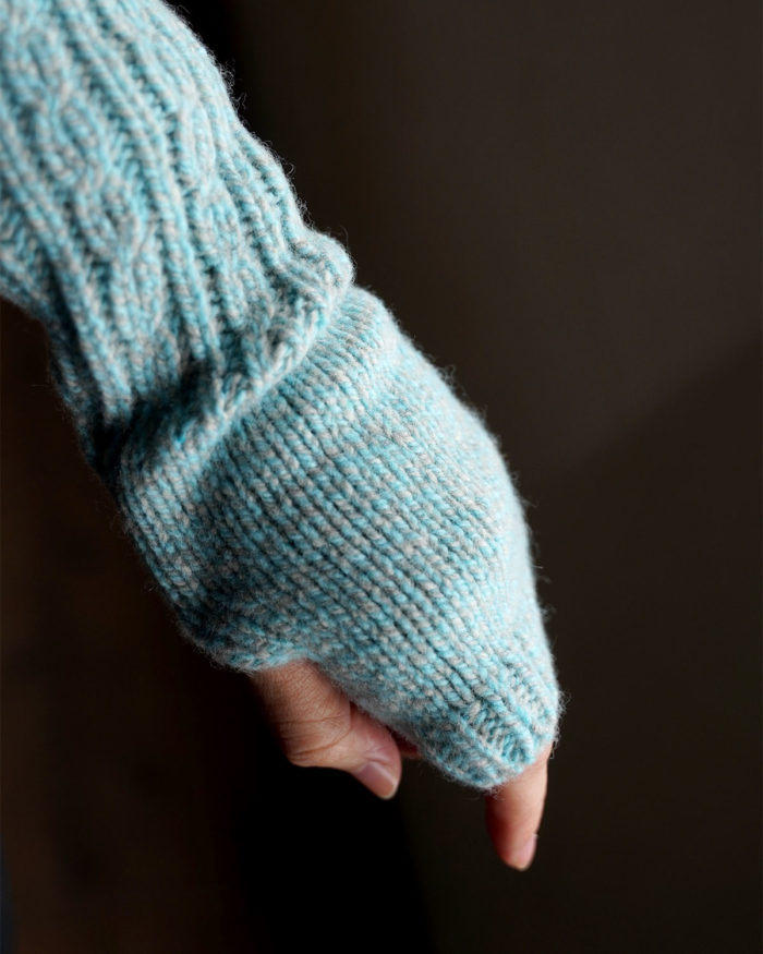リブ編みとさりげないケーブル模様が生む立体感は、