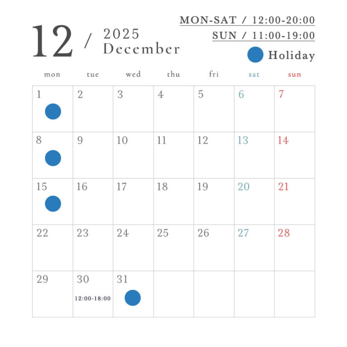 12月の定休日のお知らせ