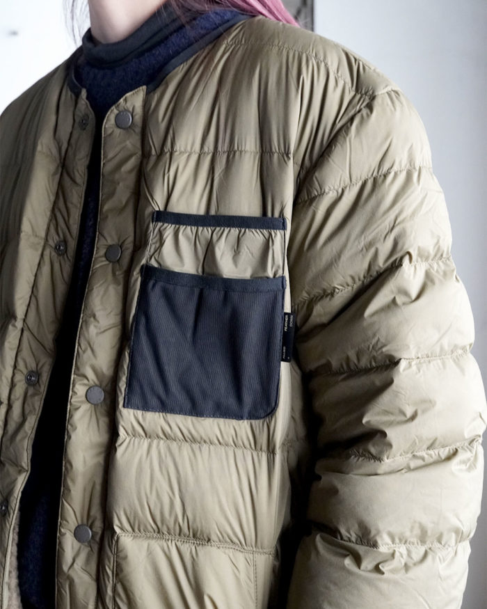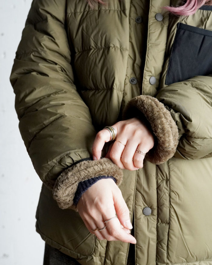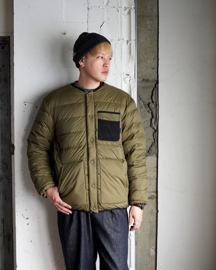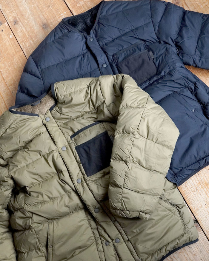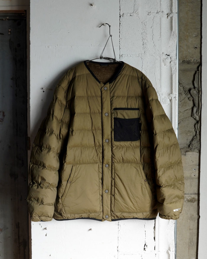2つの異なる素材を楽しめるリバーシブル仕様のダウンジャケット。