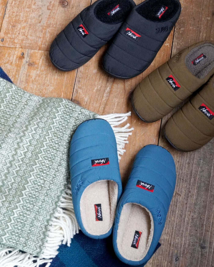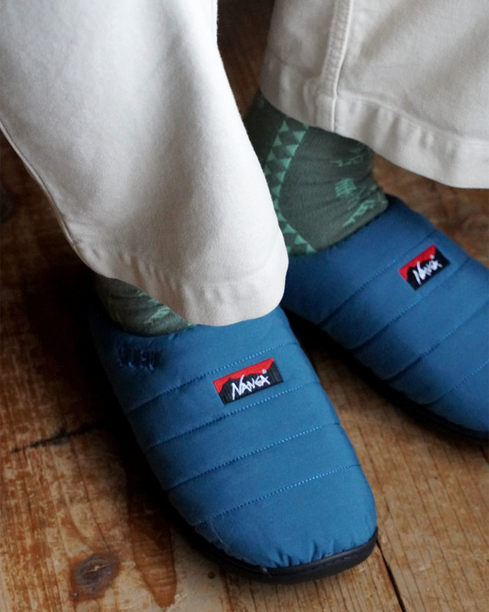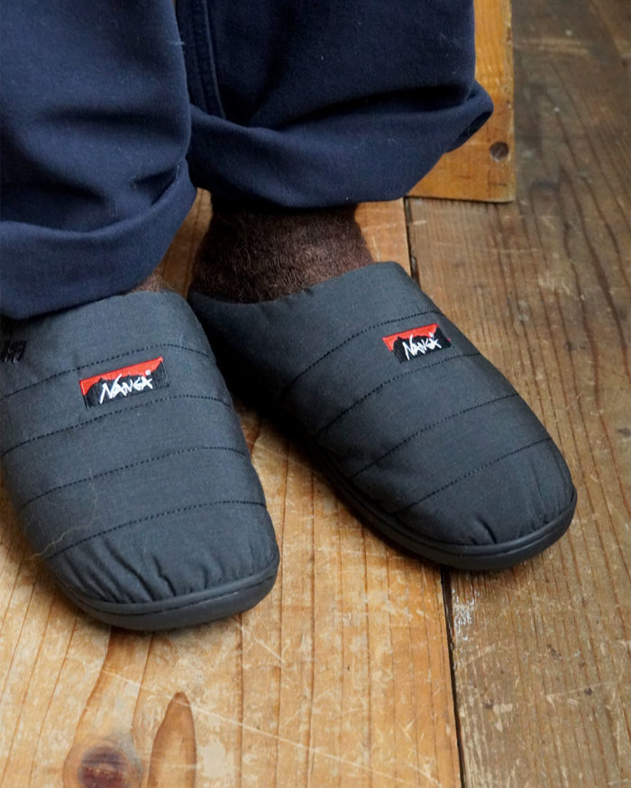 キャンプ・アウトドアシーンはもちろん、室内履きとしても。