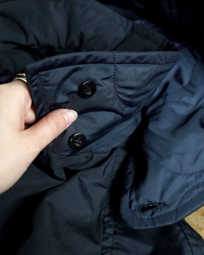 キルティング面は、撥水の効いた高密度のタフタ素材。