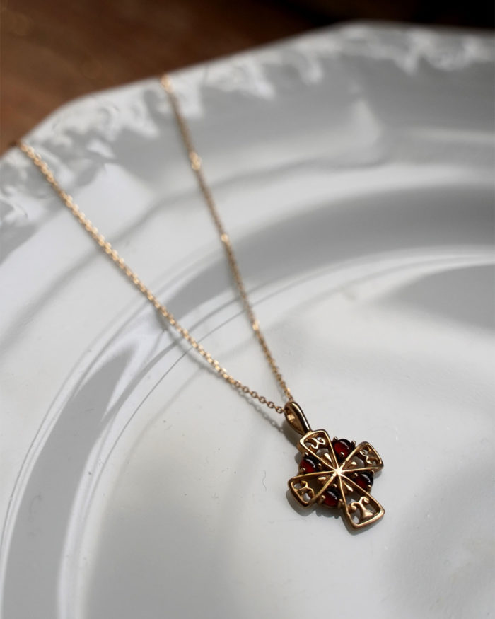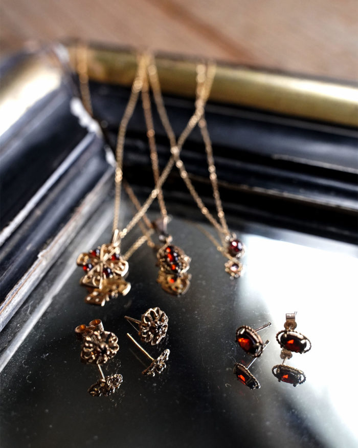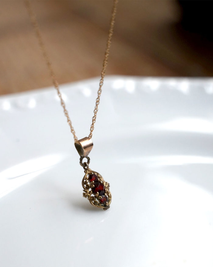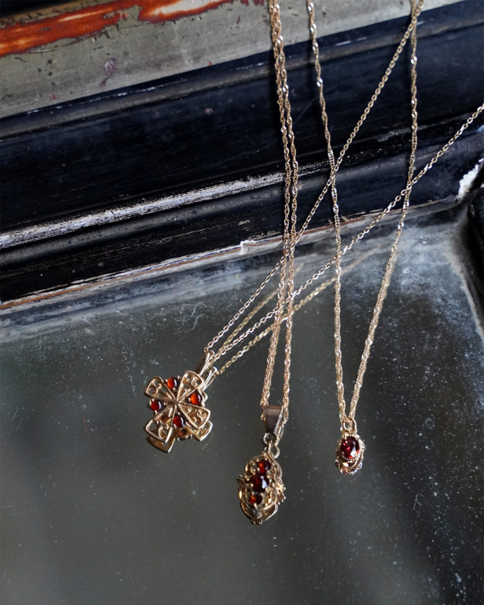 ガーネットの深い色をより楽しみたいという方はこちらのネックレスを、