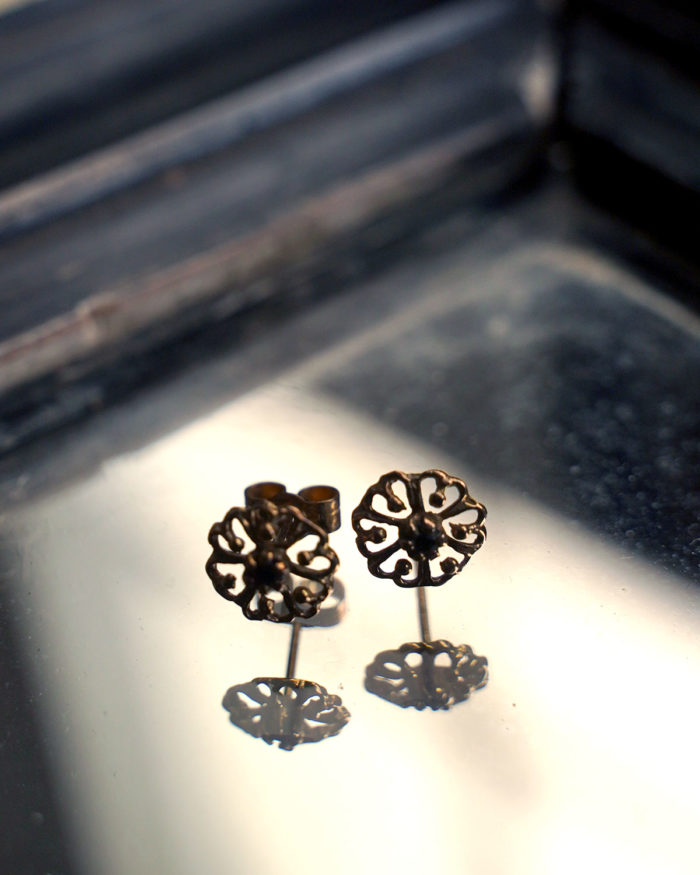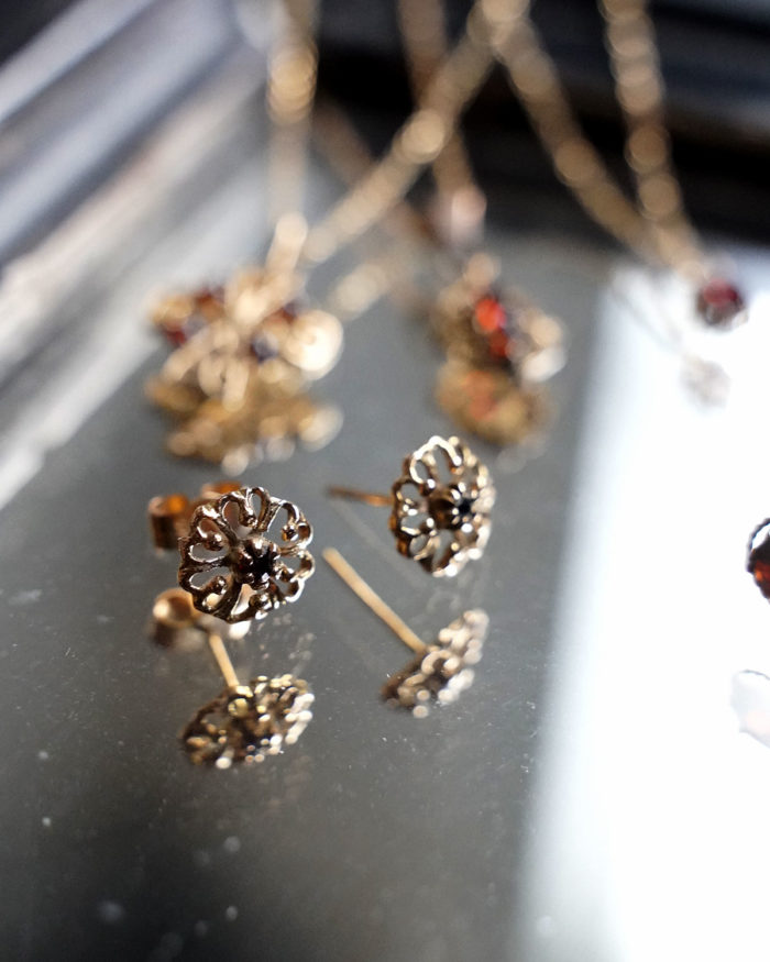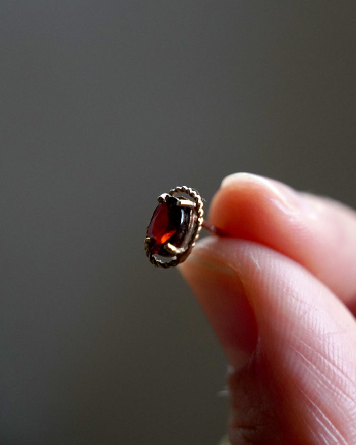 赤いガーネットがその中心にそっと埋め込まれいて可愛らしい。