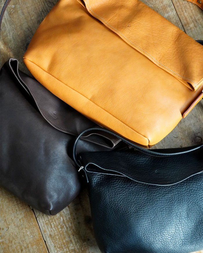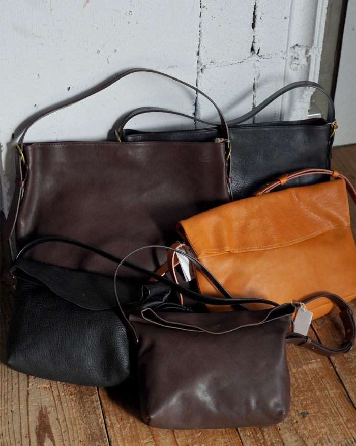 柔らかく、肌にしっとりと馴染むような質感のバッグが多い。