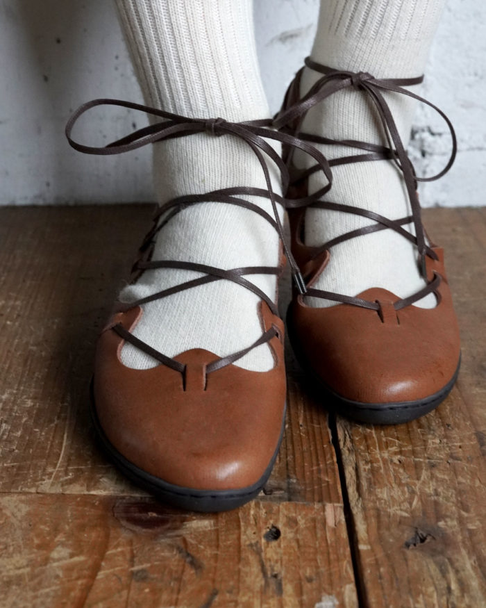 冬はもこもこ素材の暖かな靴下と合わせ、