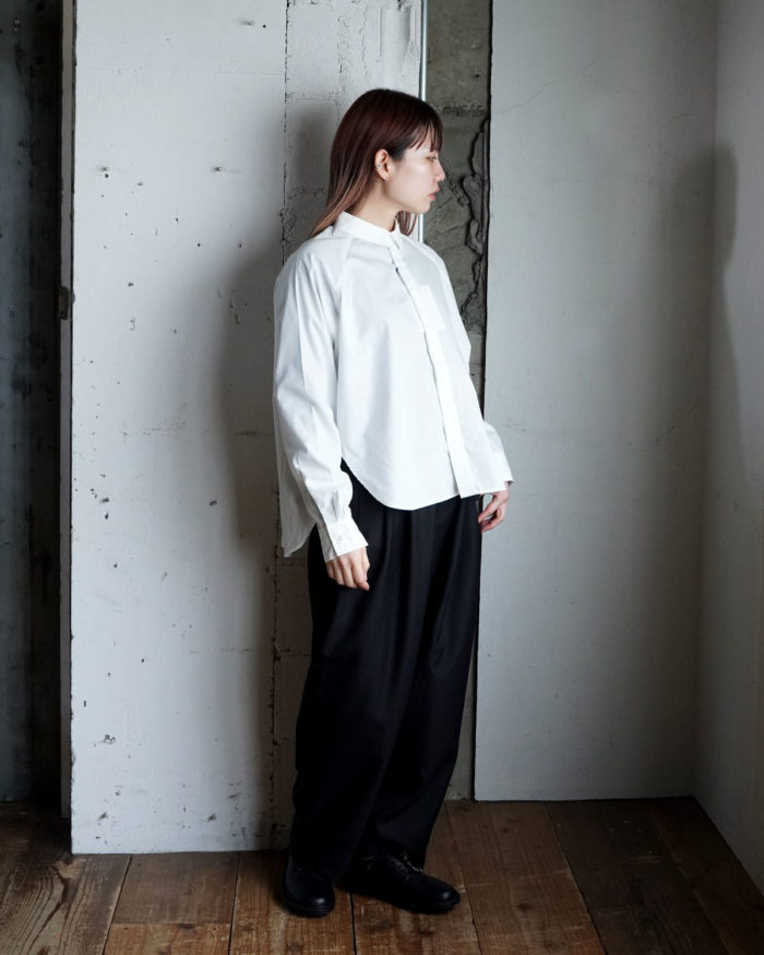 こちらもシンプルに見えて、ゆったりとしたラグランシャツで
