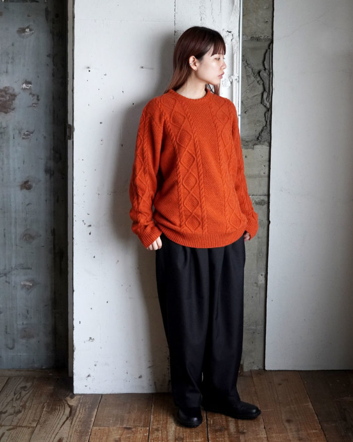 派手色のニットをゆるっと合わせてカジュアルスタイルを楽しんだり。
