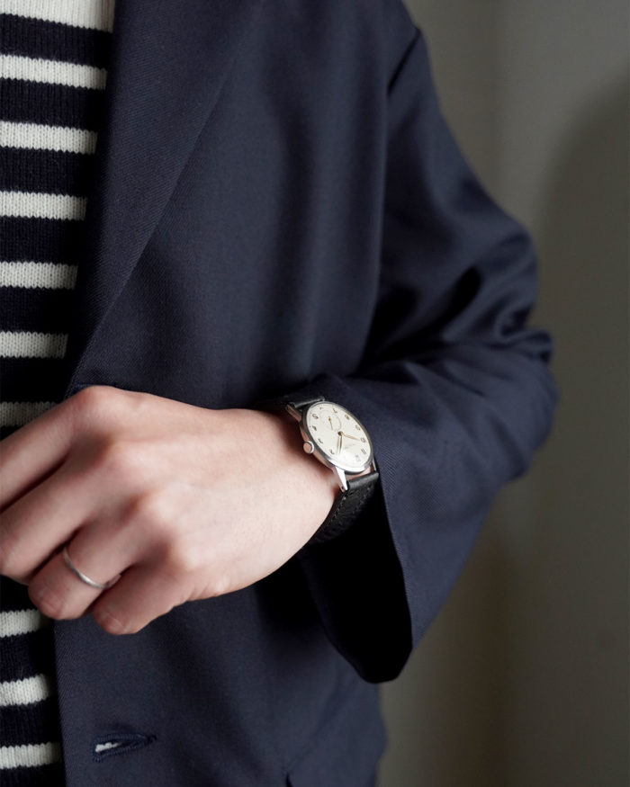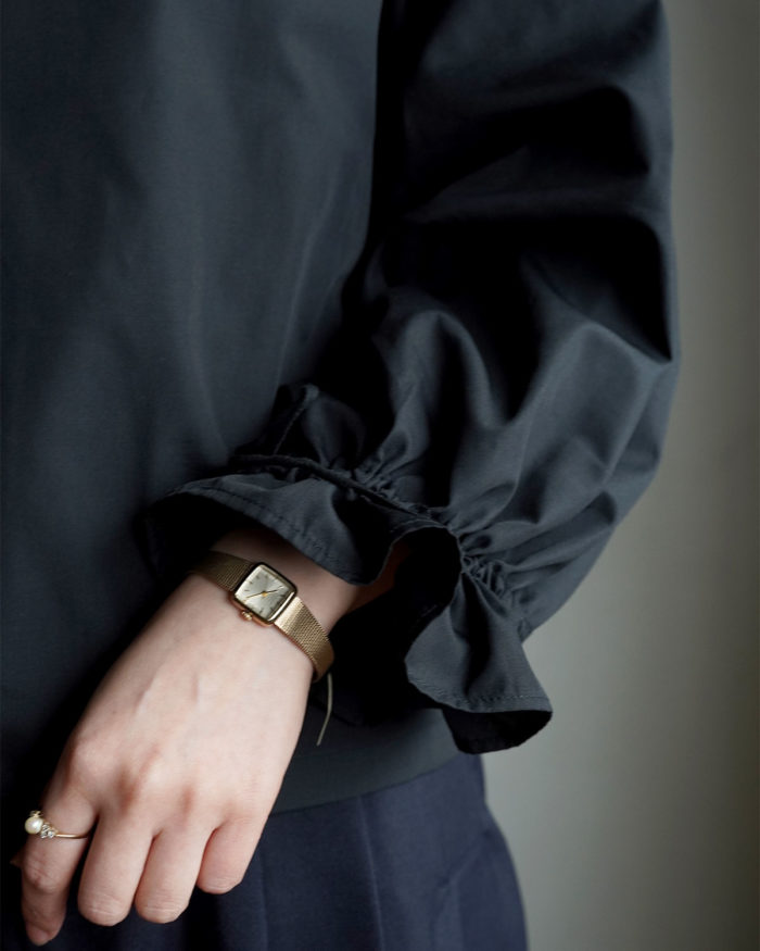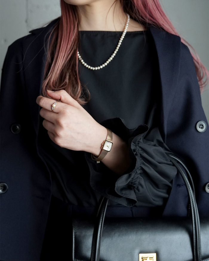 手首を見せて、女性らしい時計やジュエリーをアクセントに、